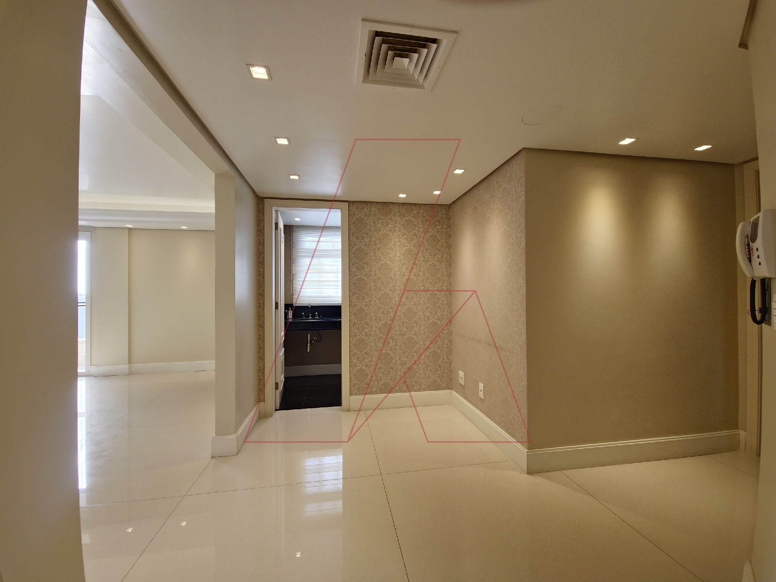 Piso em porcelanato, móveis sob medida e projeto luminotécnico valorizando cada ambiente