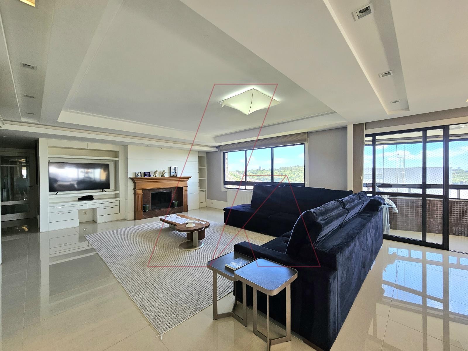 Amplo living com lareira