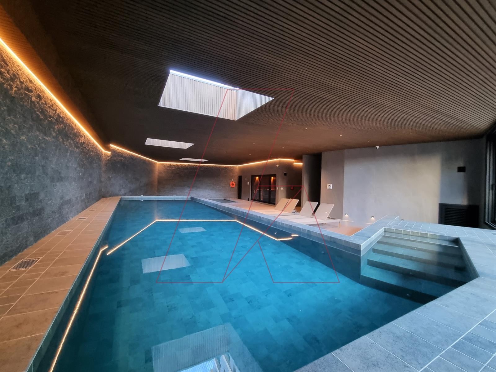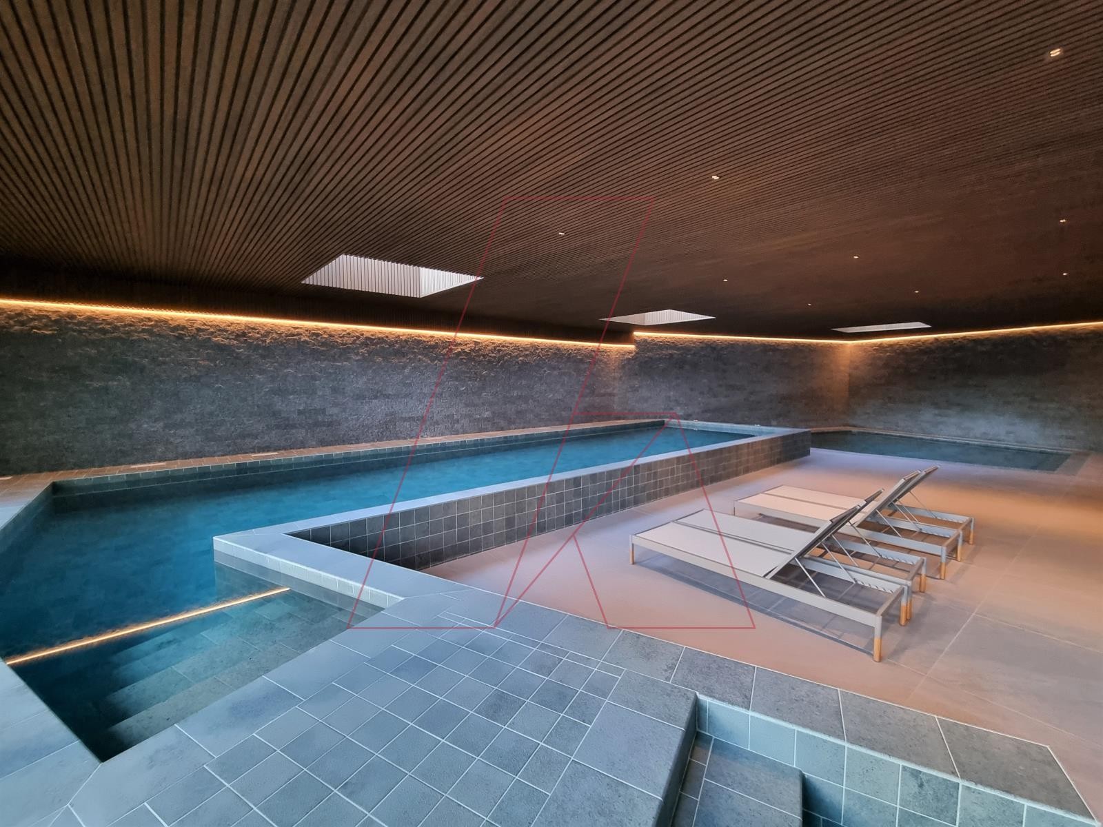 Piscinas e saunas dão forma ao espaço SPA, criado para momentos de relaxamento e bem estar.